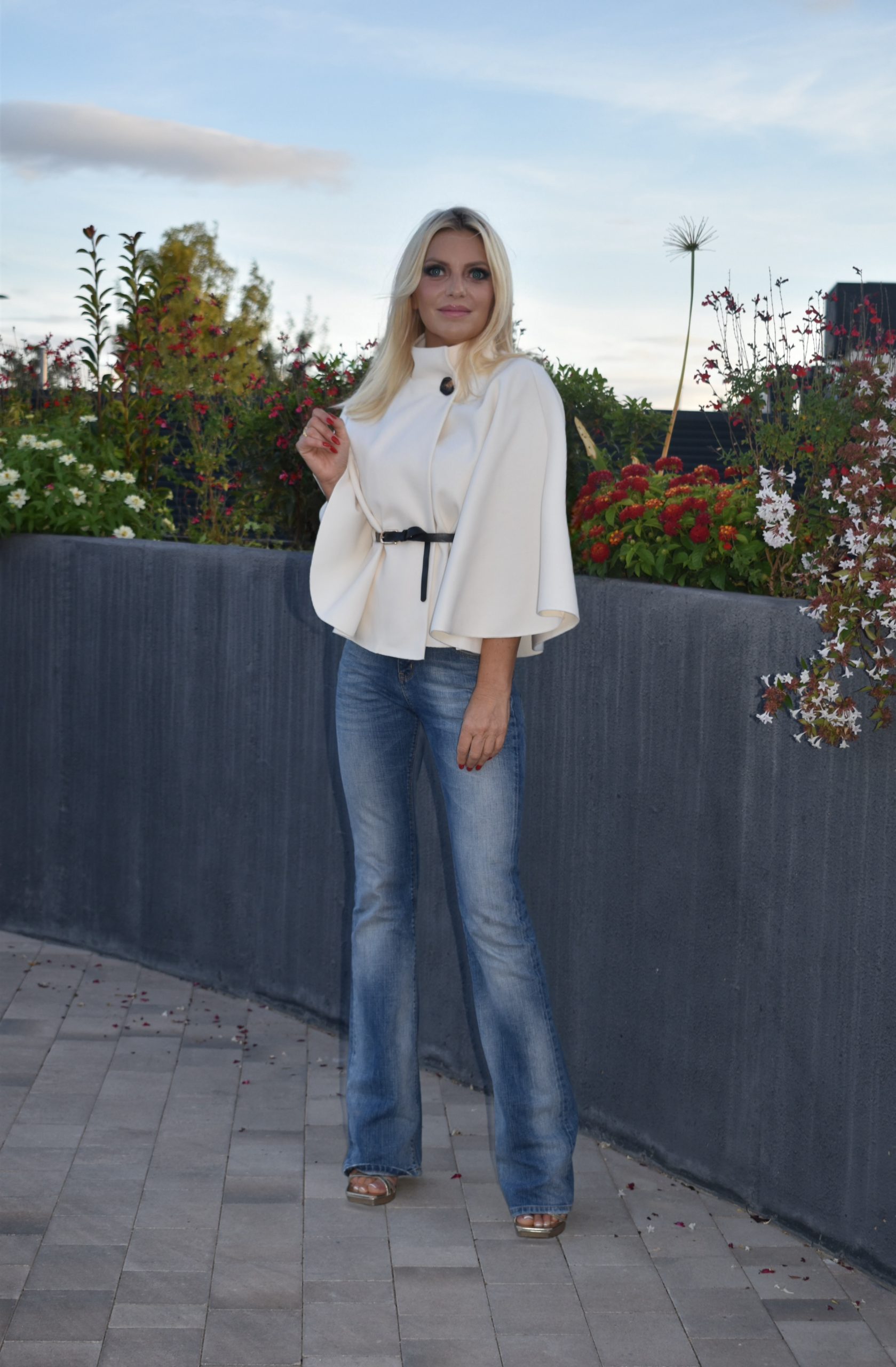Capa elegante con botón cuello, cinturón incluido.