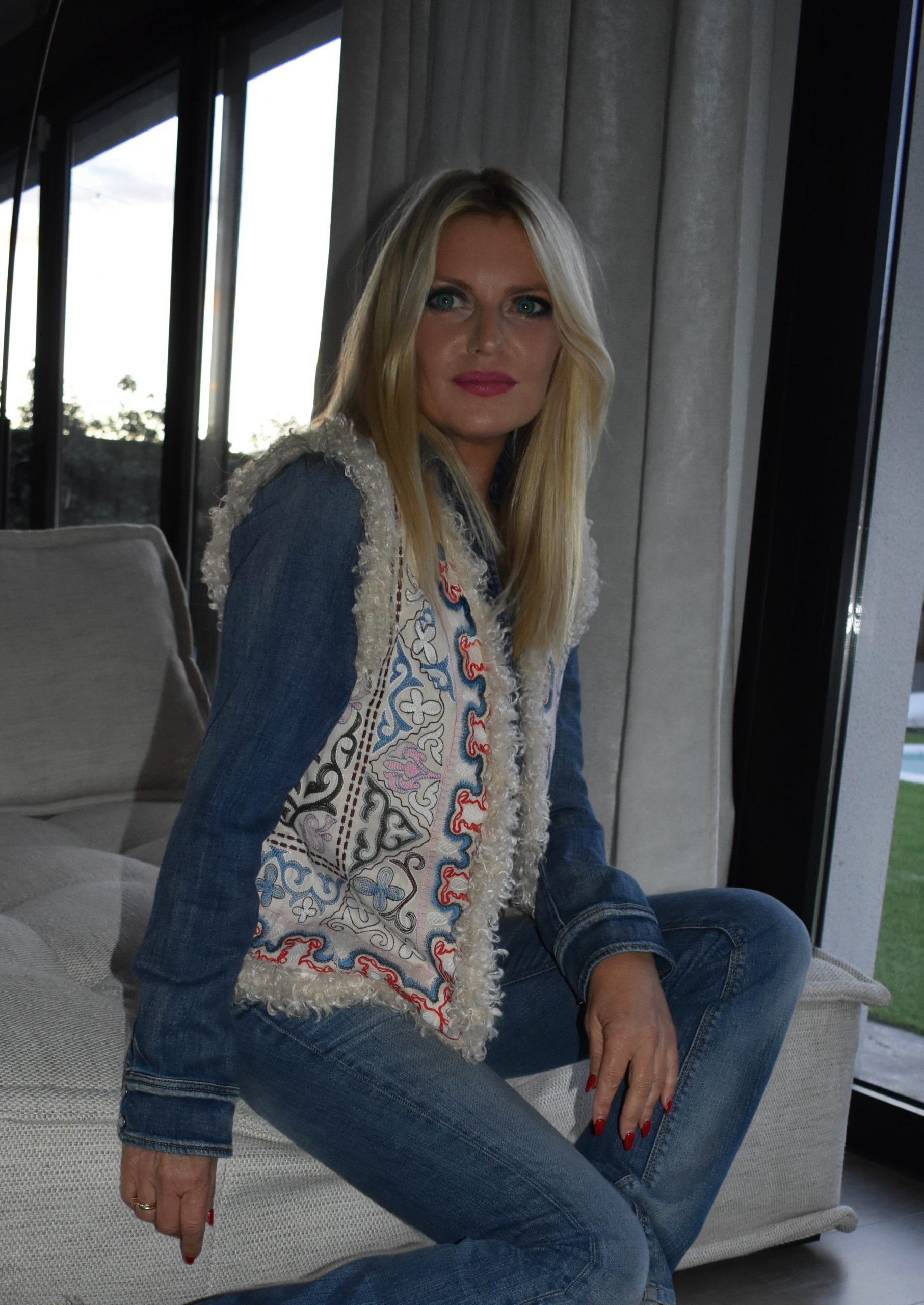 Chaleco con cenefas y borreguillo en los bordes de la prenda, tejido de antelina.
