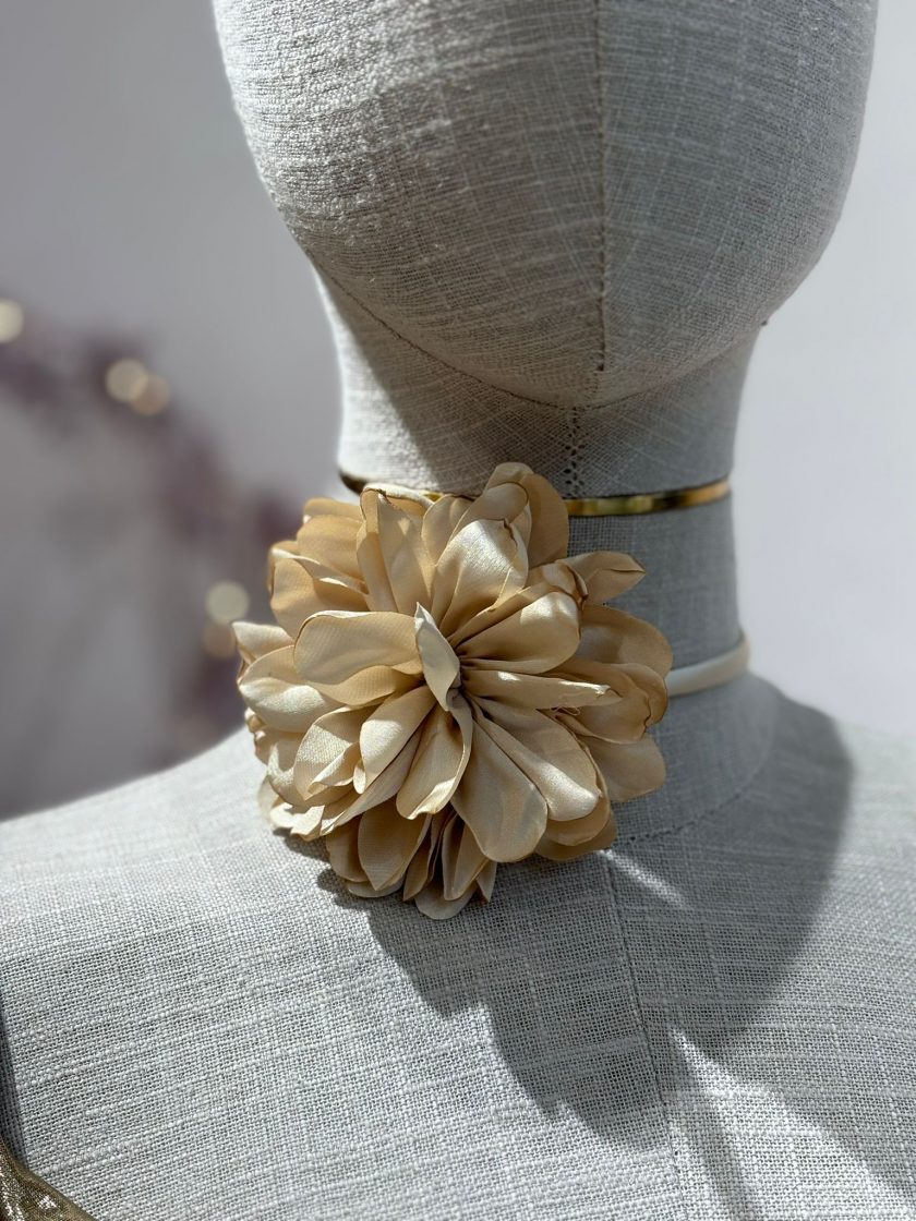 Choker flor con tejido de tela y lazada ajustable.